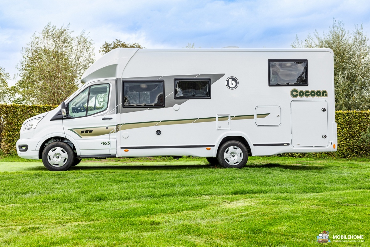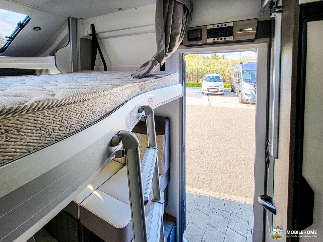 Elektrisch hefbed boven zithoek, Insectendeur, Moduleerbare L-zithoek, Centrale tafelvoet (telescopisch), Zuinige LED interieurverlichting, Automatische koelkast AES 160L, Apart vriesvak, Ruime garage, Extra diepe garagebodem, LED buitenverlichting, In de hoogte verstelbare cabinezetels, 5 gehomologeerde zit-en slaapplaatsen, GPS, fietsenrek (4 fietsen), zonneluifel